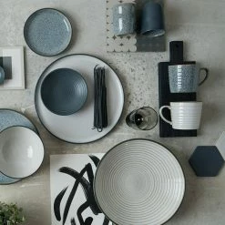 Enjoy your favorite hot beverage with Denby Studio Gray Ridged Mug (Pack of 2). The mugs are made from chip-resistant ceramic for enhanced durability. With its PTFE-free design, the cups ensure safe and reliable use. The ridged profile of these mugs adds to the aesthetic appeal of your table setting.