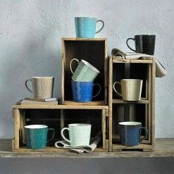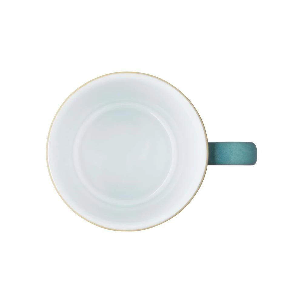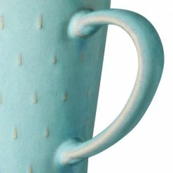 The Denby Imperial Blue Cascade Mug sports refreshing hues of sea green and powder blue that offer an attractive appeal. It is an ideal addition to any drinkware collection and can be used to serve soup and beverages. The protective glaze on this stoneware mug makes it a durable choice for everyday use.