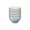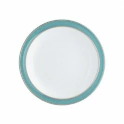 The Denby Azure Small Plate features a plain white food surface with an attractive, hand-painted azure rim. Its simple, elegant design makes it a stylish addition to any dinnerware set or table setting. This durable stoneware plate is ideal for everyday use or for serving sides and snacks at parties and gatherings.