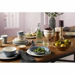 Like- Color Loop Collection by the Villeroy & Boch Group offers generously sized pieces with a textured surface of concentric circles. European design executed in porcelain brings a contemporary, original charm to your table. Dishwasher and microwave safe.