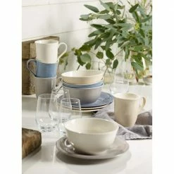 Like- Color Loop Collection by the Villeroy & Boch Group offers generously sized pieces with a textured surface of concentric circles. European design executed in porcelain brings a contemporary, original charm to your table. Dishwasher and microwave safe.