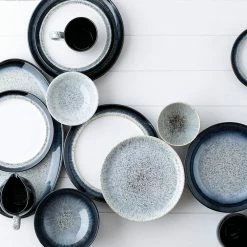 Update your table space with the Denby Halo 4-piece place setting service for 1. Crafted with long-lasting and dishwasher safe ceramic, this dinnerware set is sure to stand out on any dining table. Each piece is microwave safe.