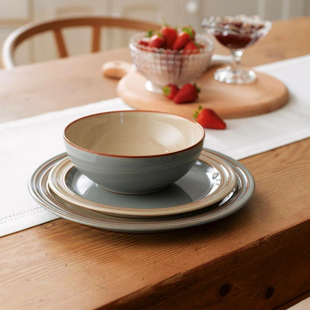 Denby Heritage Terrace Dinner Plate adds a rustic touch to your dining table. The high-quality stoneware is expertly glazed to prevent chipping and provide durability. Featuring subtle gray tones with a soft, speckled design, this plate from Denby is sure to complement your kitchen decor.