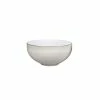 The Denby Heritage Terrace Ramekin is ideal for baking or serving an individual portion of food. The bowl is high-quality stoneware that features a soft, French gray color with a speckled textured glaze. The bowl is expertly glazed for long-lasting use. This elegant bowl from Denby makes for an ideal addition to your dinnerware.