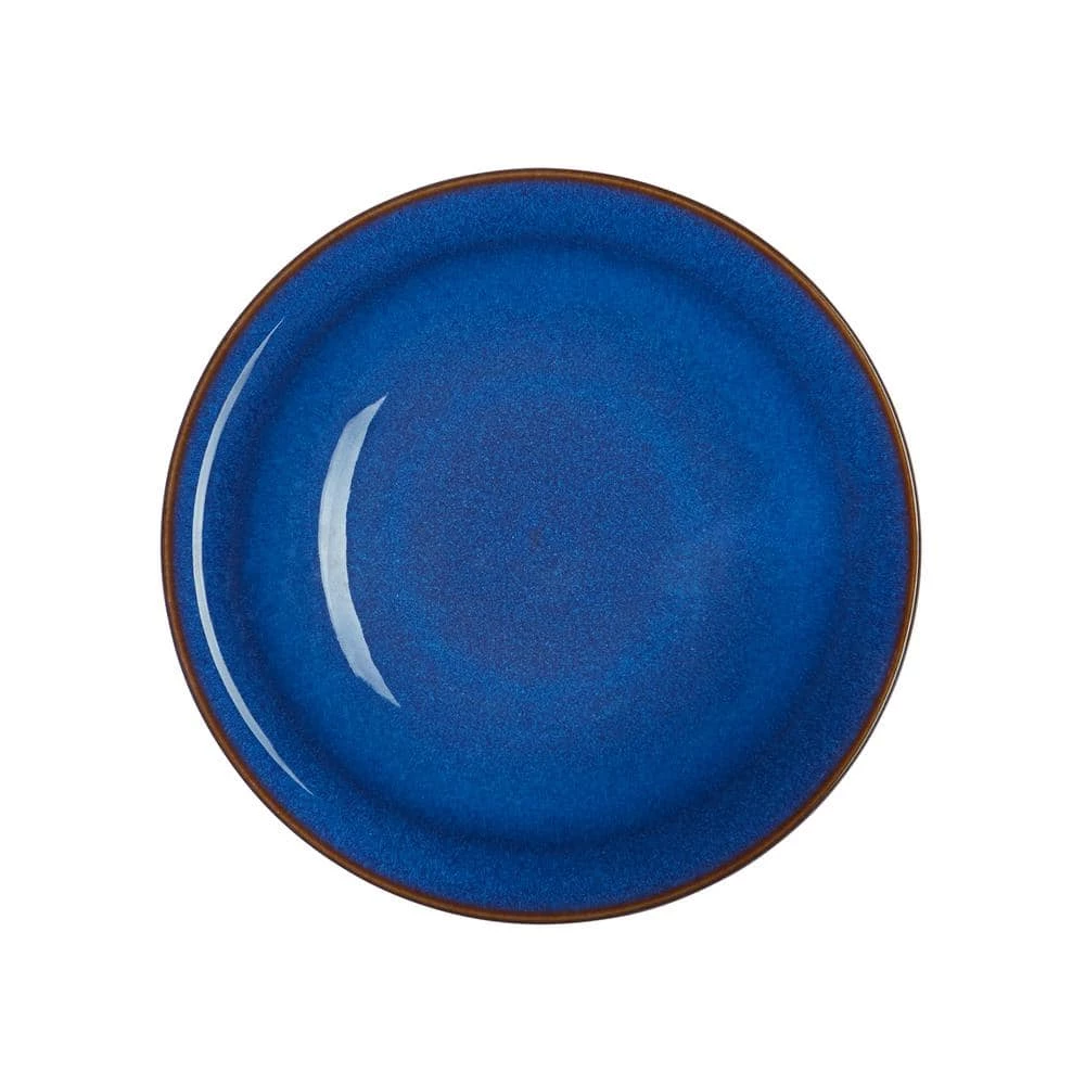 Serve kimchi, deli, tapas, or olives with the Denby Imperial Blue Small Shallow Bowl. Its glazed cobalt finish complements your table setting. This bowl is microwave- and oven-safe for convenient use. With its magnificent design, the shallow bowl from Denby makes for a perfect addition to any contemporary kitchen and table decor.
