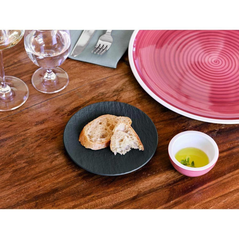 The Manufacture collection from Villeroy & Boch combines premium porcelain with high-quality craftsmanship inspired by natural materials with strong color accents. Manufacture Rock and Rock Blanc offer a look that resembles natural slate, thanks to the light glaze thats added over the porcelain to give the pieces that rustic, from-nature look. The color of Manufacture Rock resembles natural slate, while Rock Blanc offers pieces in a crisp white. Made in Germany of dishwasher and microwave safe porcelain. Villeroy & Boch has been a premium manufacturer of fine porcelain, glassware, flatware, and more since 1748.
