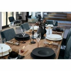 The Manufacture collection from Villeroy & Boch combines premium porcelain with high-quality craftsmanship inspired by natural materials with strong color accents. Manufacture Rock and Rock Blanc offer a look that resembles natural slate, thanks to the light glaze thats added over the porcelain to give the pieces that rustic, from-nature look. The color of Manufacture Rock resembles natural slate, while Rock Blanc offers pieces in a crisp white. Made in Germany of dishwasher and microwave safe porcelain. Villeroy & Boch has been a premium manufacturer of fine porcelain, glassware, flatware, and more since 1748.