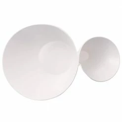 Set a dramatic modern table with the gourmet inspired design from Villeroy & Boch’s iconic New Wave collection. This uniquely designed double sided bowl is both beautiful and functional. Serve up chips and dips, salads with toppings, pasta and sauce and more. Large section holds 61 oz., smaller section holds 20 oz. Premium German porcelain is strong and durable.