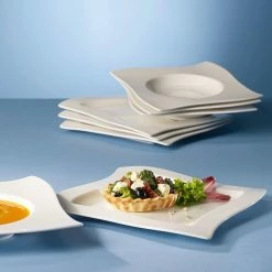 Add a new wave of vibrancy to your table setting with this innovative dinnerware collection by Germany’s premier porcelain manufacturer, Villeroy & Boch . Distinguished by angular shapes in fluid wave designs, pieces work together creating a host of options for imaginative presentation. This rim soup bowl holds 10 oz. and is useful for salads and pastas as well as soup. A tasteful, modern addition for many stylish dining settings. Microwave and dishwasher safe.