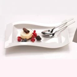 Add a New Wave of vibrancy to your table setting with this innovative dinnerware collection by Germany’s premier porcelain manufacturer, Villeroy & Boch. Distinguished by angular shapes in fluid wave designs, pieces work together creating a host of options for imaginative presentation. The 19.5 in. rectangular platter provides plenty of room to creatively present everything from appetizers to entrees. A tasteful, modern addition for many stylish dining settings. Microwave and dishwasher safe.